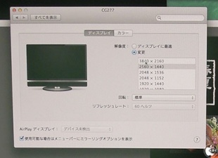 OS X Mavericksのシステム環境設定>ディスプレイを見ると、通常最大の2560×1440解像度までしか表示されません。