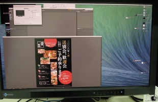 大塚商会が、2014年3月19日に名古屋で開催した「Creative Cloud デザインツール徹底解説」において、ナナオが、27型カラーマネージメント液晶モニター「ColorEdge CG277」と、Mac Pro (Late 2013)とを接続して、