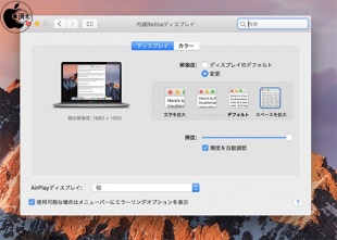スケーリング解像度は、1,680 x 1,050、1,440 x 900、1,024 x 640が選べます。