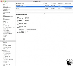 USB-C - Ethernetアダプタなどを使った有線LAN接続の他に、OSX 10.9 Mavericksからサポートされた、2台のMacBook Pro (Retina, Late 2016)をThunderbolt 3ケーブルで接続して使用する「IP over Thunderbolt」も利用出来ます。