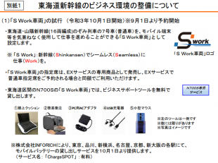 JR東海は「働くあなたを今日も乗せて」をコンセプトにした取り組みとして、N700Sの「S Work車両」は、ビジネスサポートツールが無料で貸出しされます。