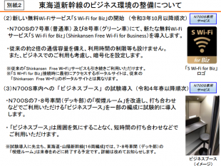 2022年春頃に、N700Sの7号車・8号車間(デッキ部)の「喫煙ルーム」を改造し、打ち合わせなどで一時的に利用できる「ビジネスブース」を試験的に導入する予定だそうです。