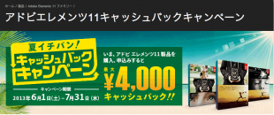 アドビシステムズが、Adobe Elements 11シリーズ購入で最大4,000円キャッシュバックする「アドビ エレメンツ11製品ファミリー 夏イチバン!キャッシュバックキャンペーン」を開始しています。