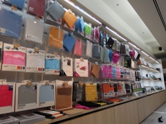 iPhoneカバー系アクセサリーなどは、サンプルが用意されていて、実際に装着して試すことが出来るようになっています。