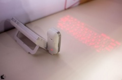 CES 2012において、celluonが、Bluetooth対応ワイヤレスレーザーキーボード「Magic Cube」のレーザーユニット部分をiPhone 4Sケース一体型にした「「Prodigy」を発表し、実機展示を行っていました。