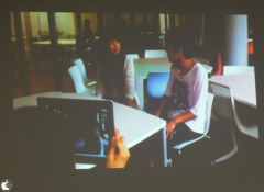 ドイツ語を使ってストーリーを持った動画撮影をiPad 2で行い、それらをYouTubeにアップさせているそうで、実践的導入に近いため生徒の学習度が高くなると説明していました。