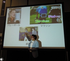今回のロンドンオリンピック2012で、多く取り上げられていたのがiPadを使った事例で、非常に大きく取り上げられた日本女子バレーの事例や、マラソンのトレーニング、また卓球といった数多くのスポーツでiPadは採用されていると紹介していました。