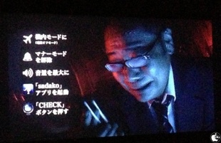 このスマ4Dは、通常の貞子3D2上映とは異なり、シーンによっては、iPhoneアプリ側に音声が流れたりするため、上映されているコンテンツそのものが異なっているようです。