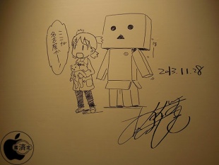 もう一つは、あずまきよひこ氏による壁に書かれた直筆イラスト&サインは撮影することが出来ました。