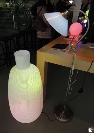 E26形式ソケットを使用した応用例として、IKEAで販売されている「照明」のランプをhueに入れ替えた照明機器を複数展示していました。