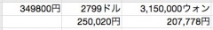 日本(5%)と韓国(10%)は消費税込みの金額で、アメリカは抜き(州によって異なるため)の金額で計算しています。