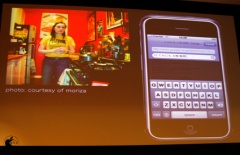 nobiさんの体験として、海外の友人宅に泊まったとき、リビングで食事をみんなんで楽しんだ後、パソコンのメールを見るために友人は、パソコンがある書斎にこもってしまった。ところが今は、iPhoneを手にリビングから離れることが無くなったというエピソードを紹介していました。確かにこれは新しいライフスタイルだと思いました。従来の携帯電話でもパソコンのメールを読む事は、有料等のサービスを受ければ可能です。ですが快適とは言えません。「本当に変わりになるか?」と言うと決してそうではありません。でも、iPhone 3Gだと真面目に変わりとなりえる気がしました。