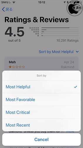 App Storeと同じユーザーレビューの並べ替えが他のAppでも可能になる?