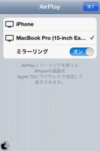 AirPlayボタンをタップし、AirPlay出力先としてMacを選択し、ミラーリングをオンにします。