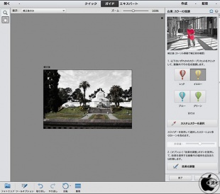 ガイド付き編集の「白黒」は、カラー画像から白黒画像を作成できます。