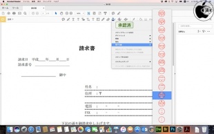 注釈>スタンプ>電子印鑑を選択すると電子印鑑がプレビュー表示されます。