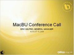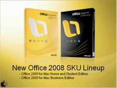 Microsoft MacBUの General Manager を務めている「Eric Wilfrid (エリック・ウィルフリッド)」氏による、報道関係者向け電話会議において Office 2008 for Mac がこれまでの「Office 2008 for Mac / Office 2008 for Mac ファミリー & アカデミック / Office 2008 for Mac Special Media Edition」という 3SKUラインアップだったものが、今後は「Office 2008 for Mac Business Edition」「Office 2008 for Mac ファミリー & アカデミック」という 2SKUラインアップとなる事を発表した。