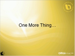 Mac OS X においても、2009年09月にリリースが予定されている 10.6 SnowLeopard において Exchange サポートが含まれることが予定されていますが、MacBU においては「歓迎すべき事では有るが、Exchange のフル機能にアクセス出来る訳では無く、限定的なアクセスであるので Outlook を開発・リリースする意義は非常に大きい」という判断となっており、Exchange の出来るだけの多くの機能を Mac OS X プラットホームでも利用出来るように Outlook の開発・リリースには期待していて欲しいという力強いメッセージが出されました。
