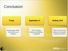 この開発中の「Outlook for Mac」が搭載されるのは、「2010年ホリデーシーズン」に市場に投入される次期バージョンの Office 2010 for Mac が予定されています。