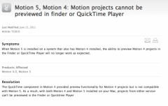 Appleが、サポート情報「Motion 5, Motion 4: Motion projects cannot be previewed in finder or QuickTime Player」を公開し、