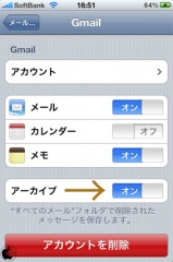 iOS 4:Gmailの編集をアーカイブから削除に変更する