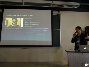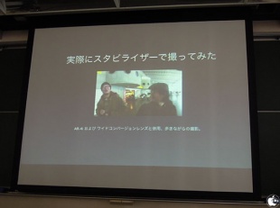 2012年にApple Store, GinzaでiPhoneで動画編集を行うというイベントを行い、取材カメラとしてiPhone 4Sを使い出したと紹介したが、いまやiPhone 5sのFaceTimeカメラ側で撮影したところ、民政機ビデオカメラと比べると画質は劣るが、一般レベルのビデオカメラと比べて遜色がないと説明してました。