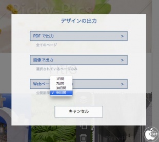 Webページとして出力した場合、Picky-Picsサイト上で、ログイン無しで閲覧可能なデーターが作成されます。