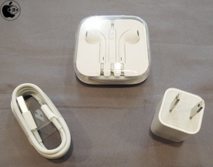 本体と一緒に同梱されているのは、iPhone 5sと同じ、Lightning - USBケーブル、Apple EarPods with Remote and Mic、Apple 5W USB電源アダプタ(5V/1A)です。