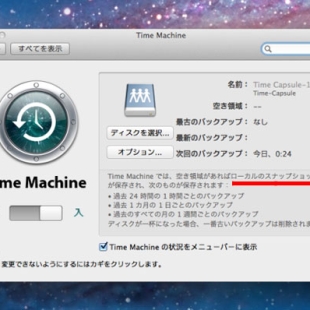 OS X Lionで、Time Machineを利用している場合、Macintosh HDの空き容量が少なくなるのは、ローカルスナップショットによる正常な動作(オフも可能)