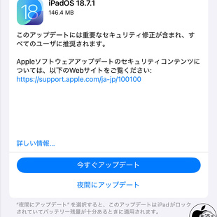 Apple、重要なセキュリティを修正した「iPadOS 18.7.1」を配布開始