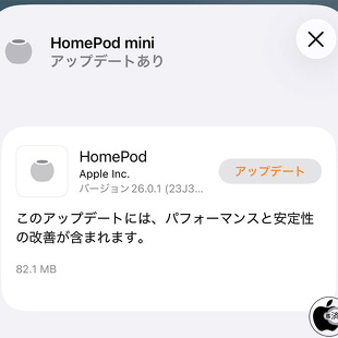 Apple、安定性を改善した「HomePodソフトウェア 26.0.1」を配布開始