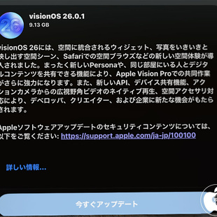 Apple、バグやセキュリティを修正した「visionOS 26.0.1」を配布開始