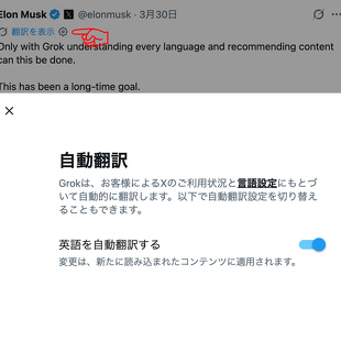 X、日本でもタイムラインで英語が日本語になるGrokの自動翻訳を展開(オフにする方法)