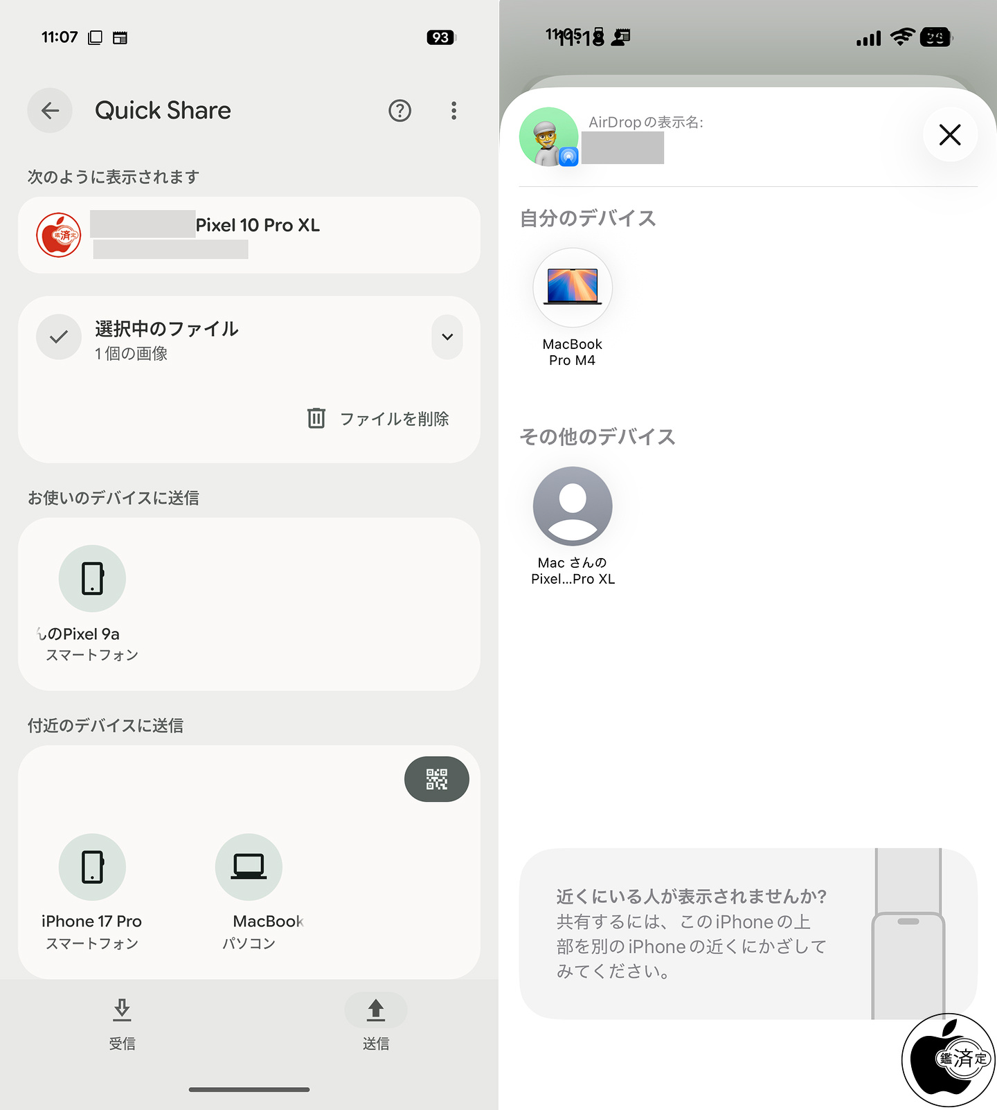 Google、Pixel 10シリーズでQuick ShareとAirDropとのファイル共有が可能に(設定方法紹介)