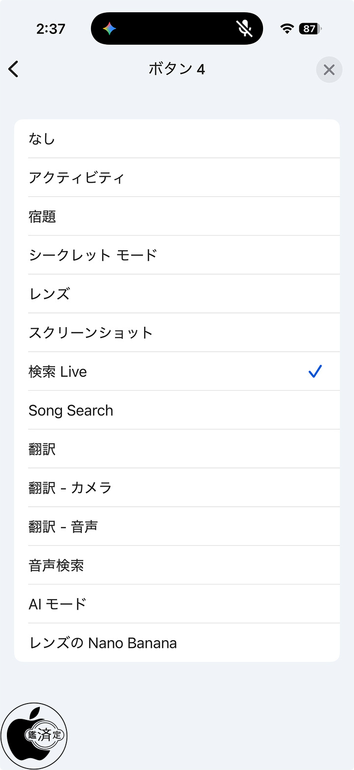 Google for iOSの場合、ウィジェットに「検索 Live」ボタンを設定できます。