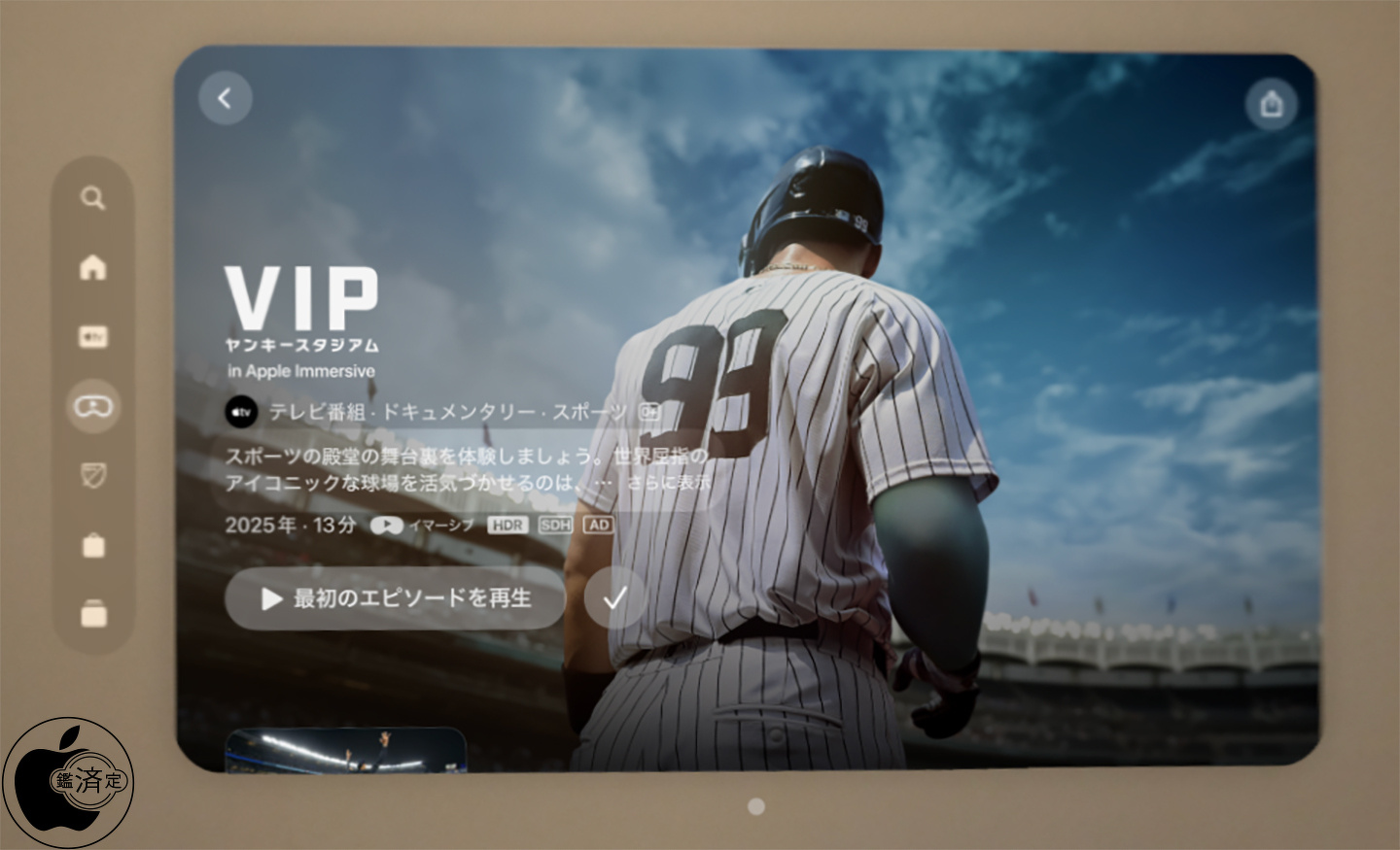 Apple、Apple Immersive Video「VIP:ヤンキースタジアム」を配信開始