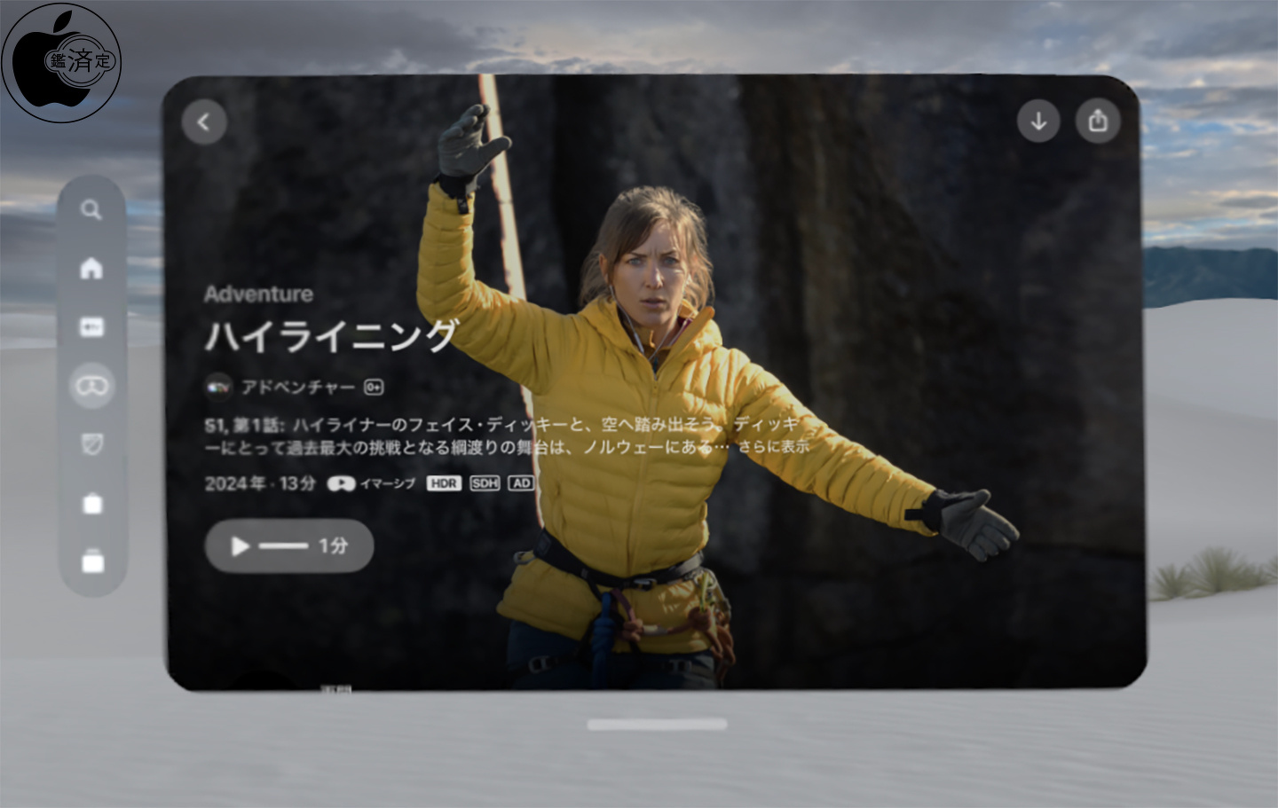 2024年02月02日(金) Vision#Apple#VisionPro#ImmersiveVideo Apple、Apple Immersive Video「Adventure」のエピソード「ハイライニング」を配信開始 ※本サイトは、アフィリエイト広告および広告による収益を得て運営しています。購入により売上の一部が本サイトに還元されることがあります。 ハイライニング Appleが、Apple Vision Pro用の新しいApple Immersive Videoとして、世界で最もセンセーショナルな場所で畏敬の念を抱かせるチャレンジに挑む先駆的なアスリートたちを追う「Adventure」の第1弾コンテンツとして「ハイライニング」の配信を開始しています。 ハイライナーのフェイス・ディッキーが、ノルウェーの息を呑むようなフィヨルドの上空3,000フィートに挑戦します。