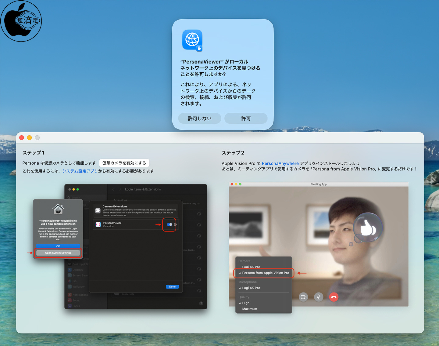 Apple Vision ProのPersonaをMac上で仮装カメラとして使用可能にするアプリ「Persona Anywhere」を試す
