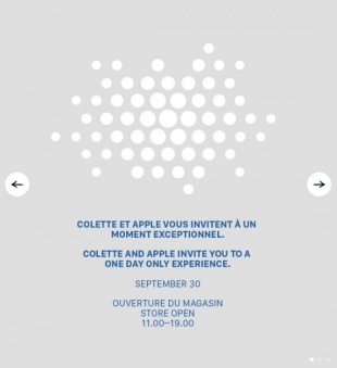 MacRumorsが、Macplusの伝えた内容として、Appleと仏のファッションブティック「colette」が、9月30日に1日限りのイベントを開催すると案内していると伝えています。