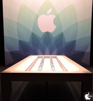 2014年9月の発表イベントの時と同様に、専用の展示台にApple Watch Sport、Apple Watch、Apple Watch Editionがセットされていました。