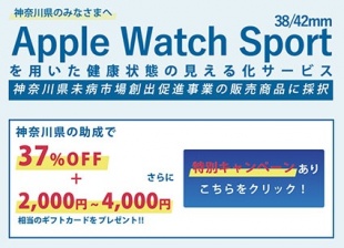 神奈川県「Apple Watch Sport+健康状態の見える化サービス」をセット購入し、所定の条件クリアで1.2万円〜1.4万円相当のJCBギフトカードが貰えるキャンペーンを実施