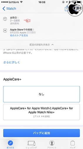 現在時刻で、Apple Storeでの受取は発売日当日に受取可能です。