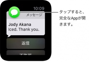 通知は、WatchKitが有る無しでアクションが異なり、通知に対応したWatchKitが有る場合は、あらかじめ設定したメッセージを返信することが可能で、WatchKitが無い場合は、見るだけで返信は出来ず、iPhone側で返信する必要があります。