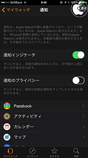 Watch OSは、iOS 8.2以降がインストールされたiPhoneに届く通知を表示することが出来ます。