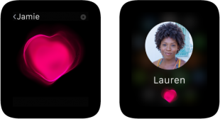 画面上に 2 本の指を置くと、自分の心拍数の感触が再現されると同時に画面にそのアニメーションが表示され、ハートビートを共有することができます。
