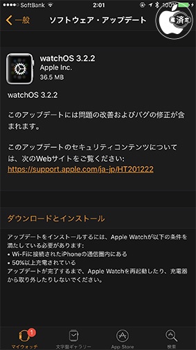 Appleが、iPhoneのiOS 10>Apple Watch>一般>ソフトウェア・アップデート経由で、より多くの機能を追加した「WatchOS 3.2.2 アップデート」の配布を開始しています。