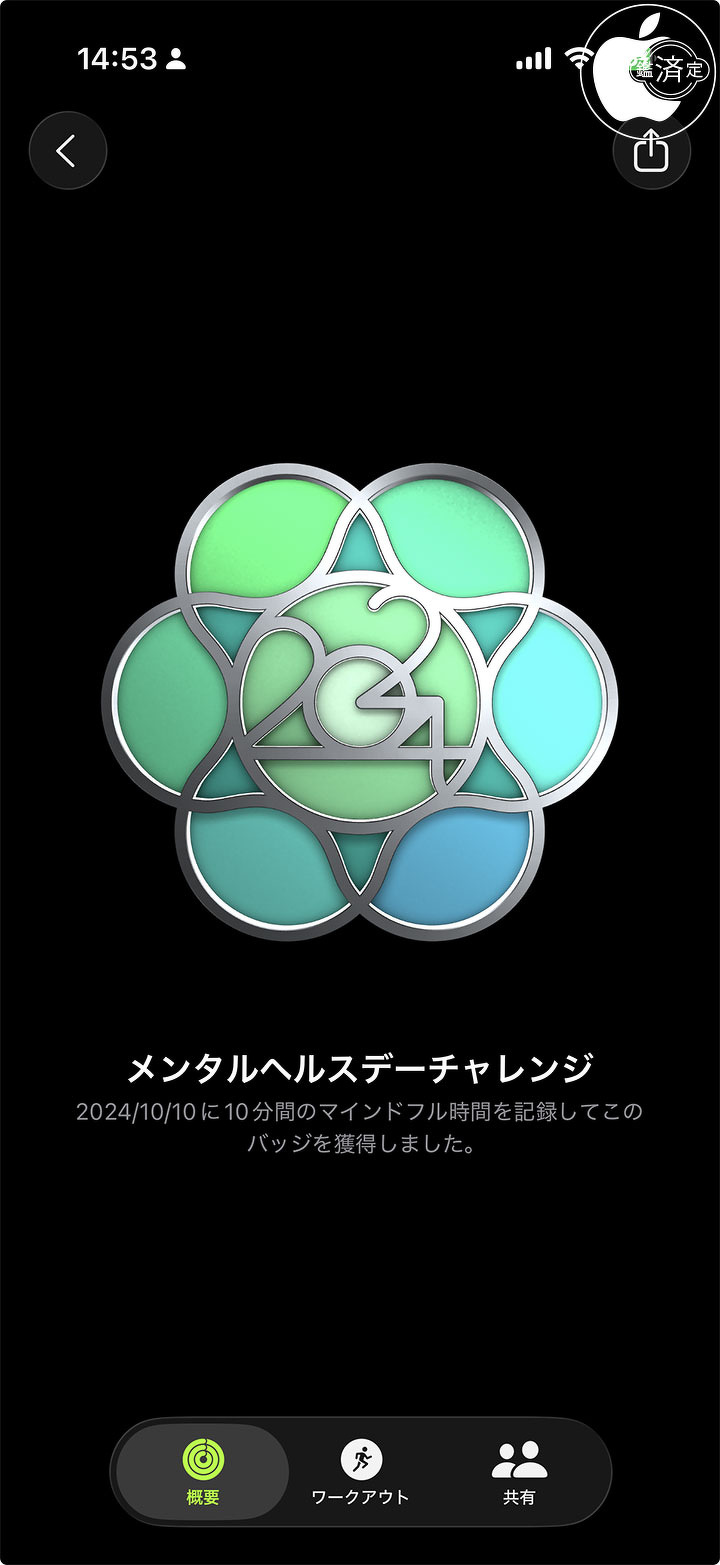 Appleが、iOSのフィットネスで「メンタルヘルスデーチャレンジ」(2024)の提供を開始しています。