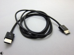 違いは、コネクタ形状で、Apple HDMI to HDMI Cable (1.8m)は、Apple Dock コネクタ USB ケーブルのUSBコネクタ側に似た形状をしています。(大きさは違います)