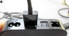 Apple TV (2nd generation)のHDMI端子に接続してみると、コネクタの高さが低いため、メンテナンス用のUSBポートを塞ぐことはありません。