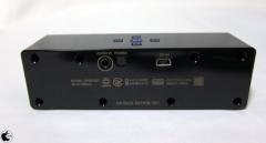 背面には、電源ボタン、充電用USBコネクタ、外部入力端子が装備されています。